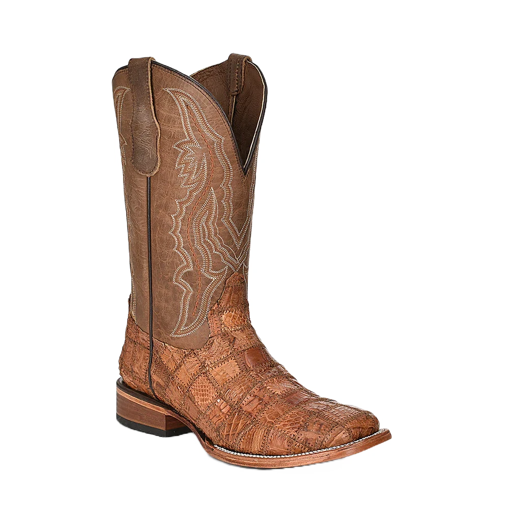Corral Boots Corral Men’s Cognac Caiman Patchwork Wide Square Toe Boots L5950