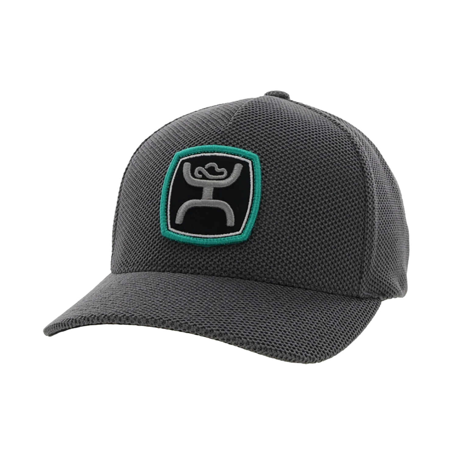 - Grey mesh with teal border Hooey patch