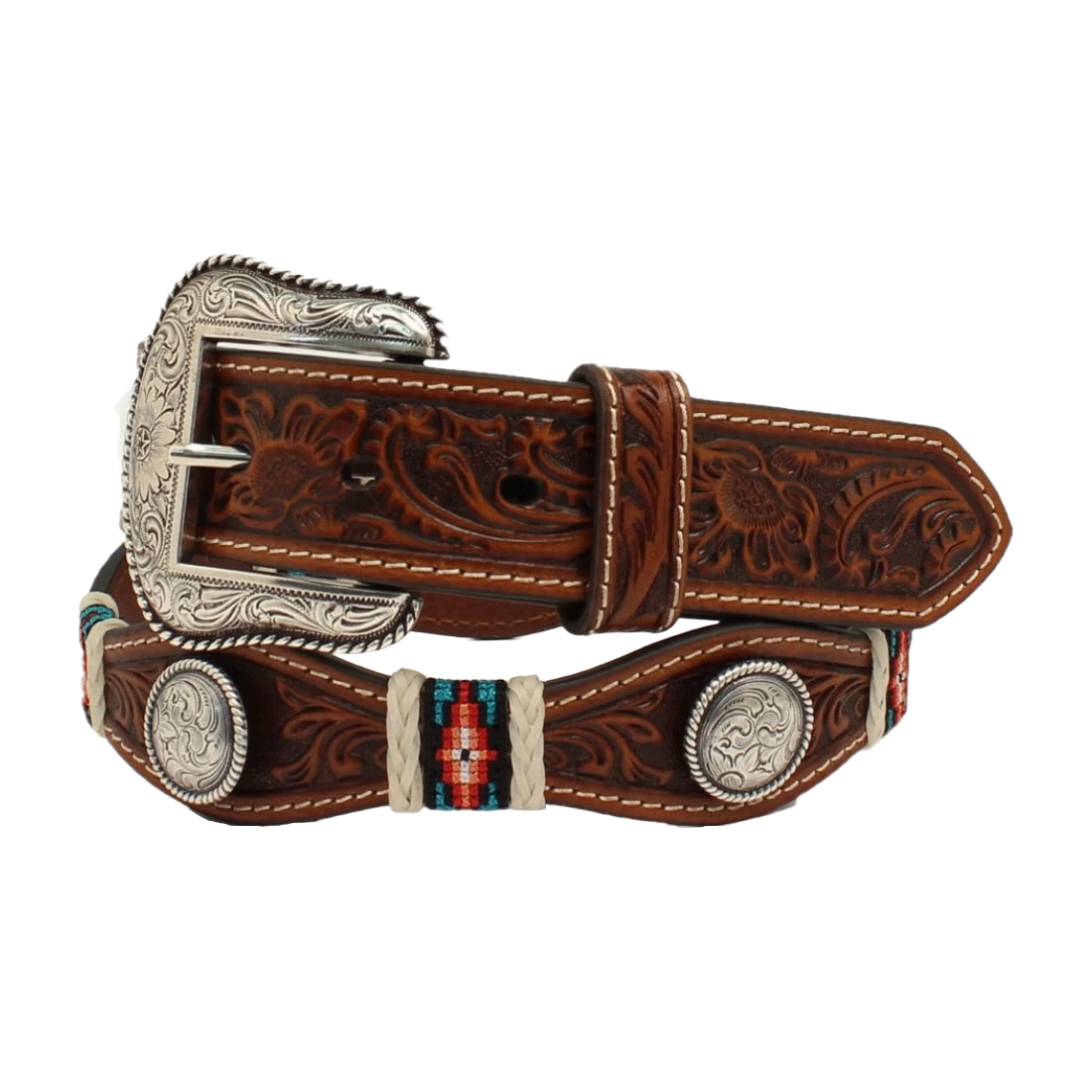 Nocona® Men’s Floral Embossed Scalloped Brown Belt N210003708